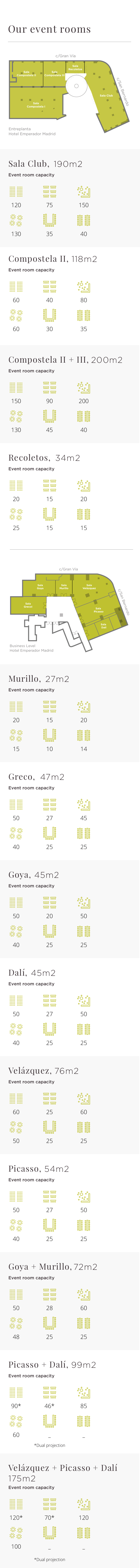 Organising an event in the heart of Madrid and surprising all your guests. If that is your objective, Hotel Emperador offers a wide range of interior and outdoor spaces, including 12 indoor meeting and event rooms and a stunning rooftop terrace with different spaces capable of hosting any kind of event, one of them with air conditioning.